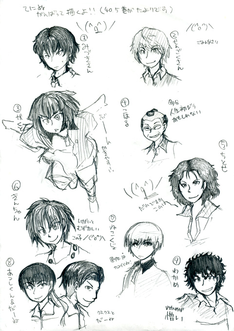 ぱらぱらして「ストップ」で当たったページのキャラを描く。ということで。